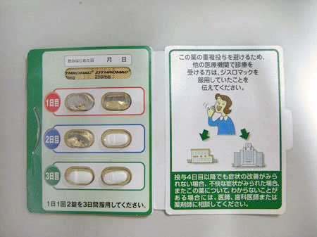 さて、医者には最終兵器、ジスロマックを処方してもらったので